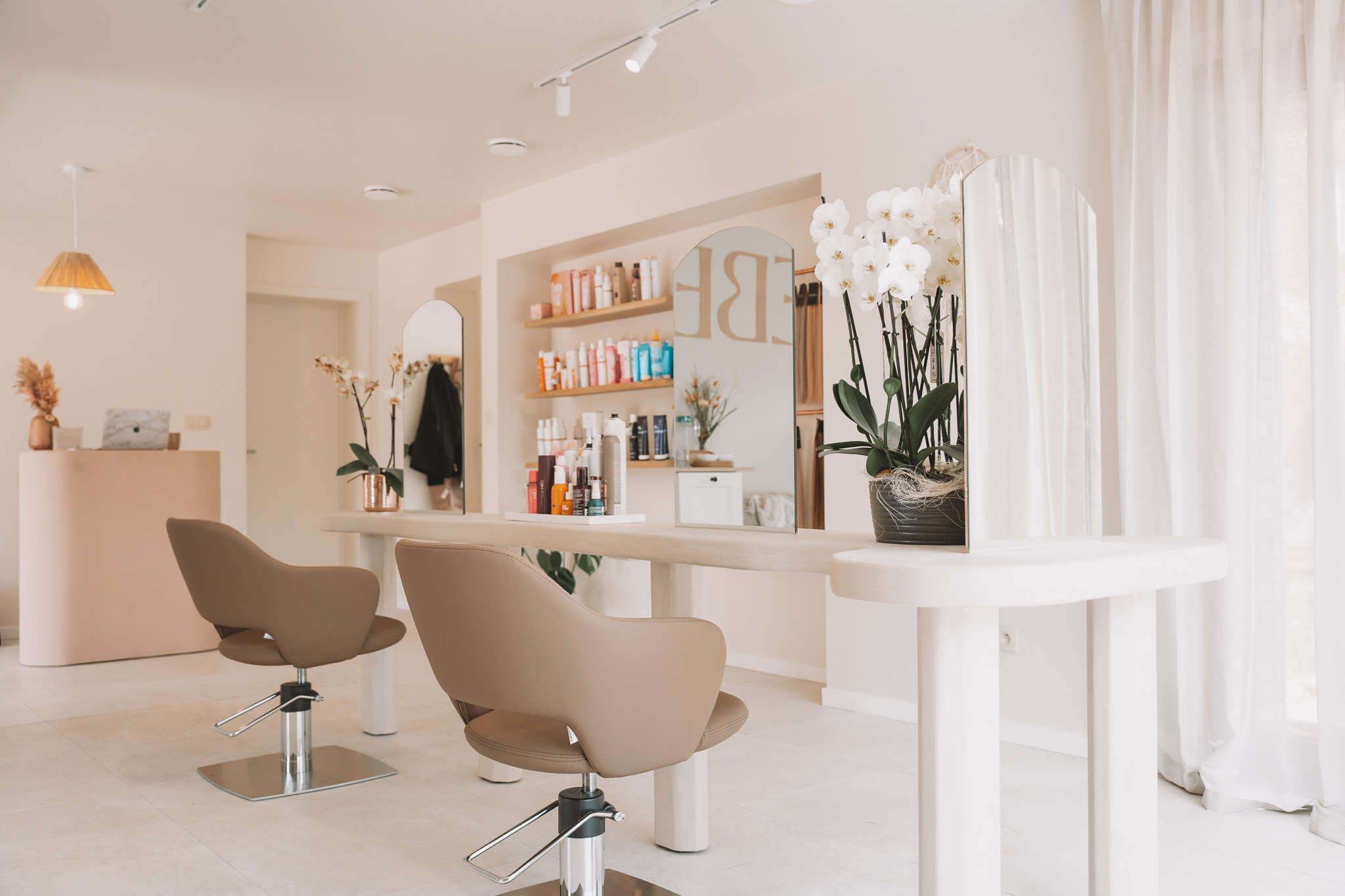 Hier mag je ademen. Van zodra je binnenstapt, voel je het: rust, warmte en een tikkeltje luxe, maar nooit stijf of afstandelijk. Het salon is een plek waar je jezelf mag zijn – met of zonder make-up, met volle goesting of net helemaal op. We nemen onze tijd, we luisteren, en ja: ook je verhaal is hier veilig. Er wordt gelachen, soms gezwegen, altijd gerespecteerd. Of je nu komt voor een balayage, een treatment of gewoon wat me-time: hier draait het niet alleen om mooi haar – maar om even thuiskomen in jezelf.